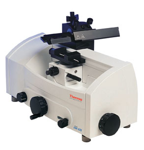 進給:通過精密的機械結(jié)構(gòu),操作者轉(zhuǎn)動手輪,樣本夾頭會向上移動一個非常精確的微小距離(即切片厚度)。